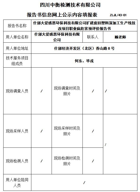 什邡大愛感恩環(huán)??萍加邢薰緮U建廢舊塑料深加工生產(chǎn)線技改項目預(yù)評價