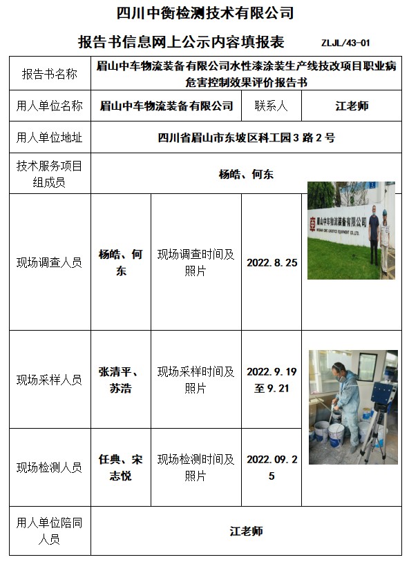眉山中車物流裝備有限公司水性漆涂裝生產(chǎn)線技改項目控制效果評價