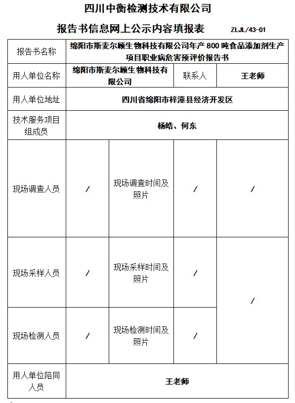 綿陽市斯麥爾顧生物科技有限公司年產(chǎn)800噸食品添加劑生產(chǎn)項(xiàng)目預(yù)評(píng)價(jià)