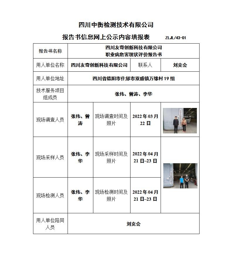 四川友奇創(chuàng)新科技有限公司職業(yè)病危害現(xiàn)狀評(píng)價(jià)