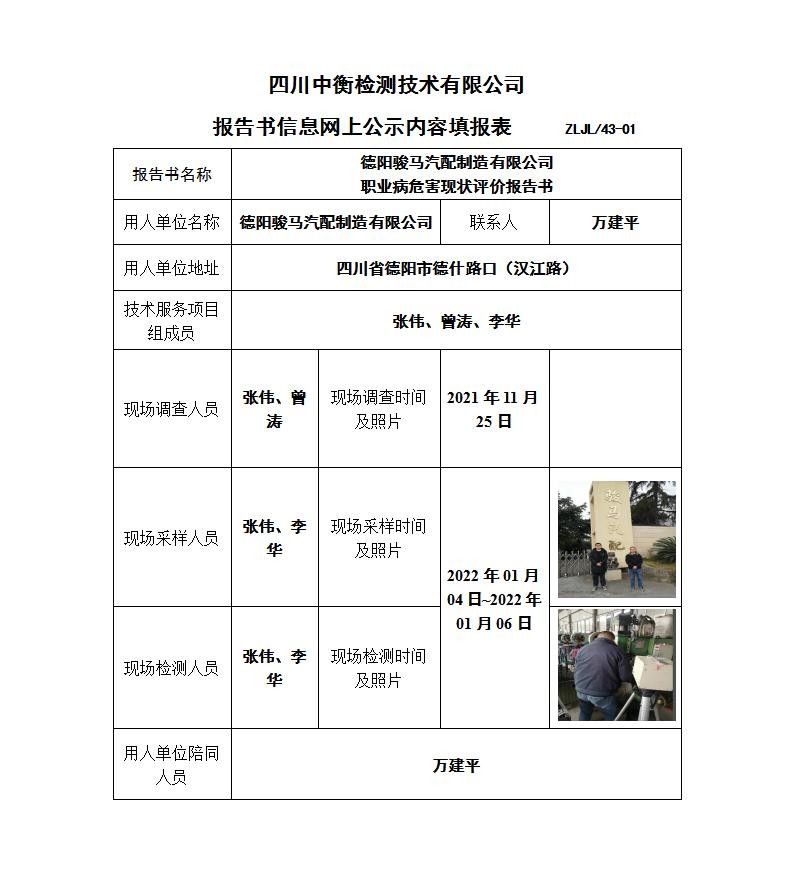 德陽駿馬汽配制造有限公司職業(yè)病危害現(xiàn)狀評價