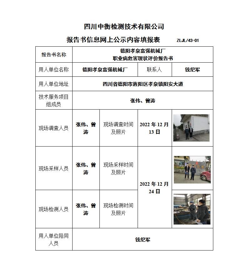 德陽孝泉富強(qiáng)機(jī)械廠 職業(yè)病危害現(xiàn)狀評價(jià)報(bào)告書