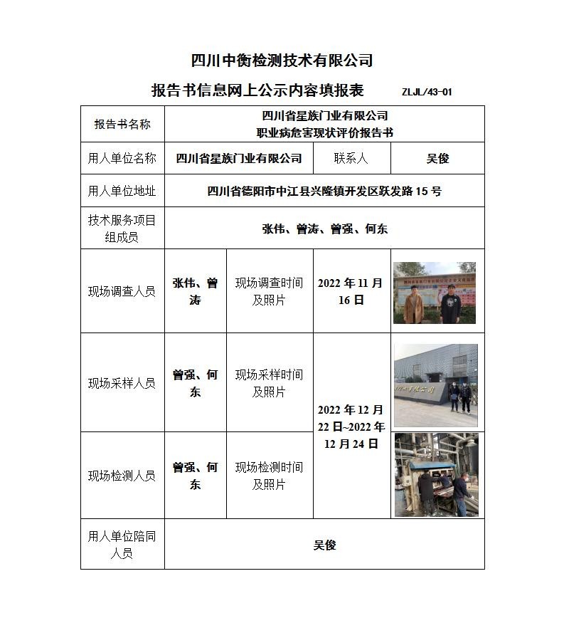 四川省星族門業(yè)有限公司 職業(yè)病危害現(xiàn)狀評(píng)價(jià)