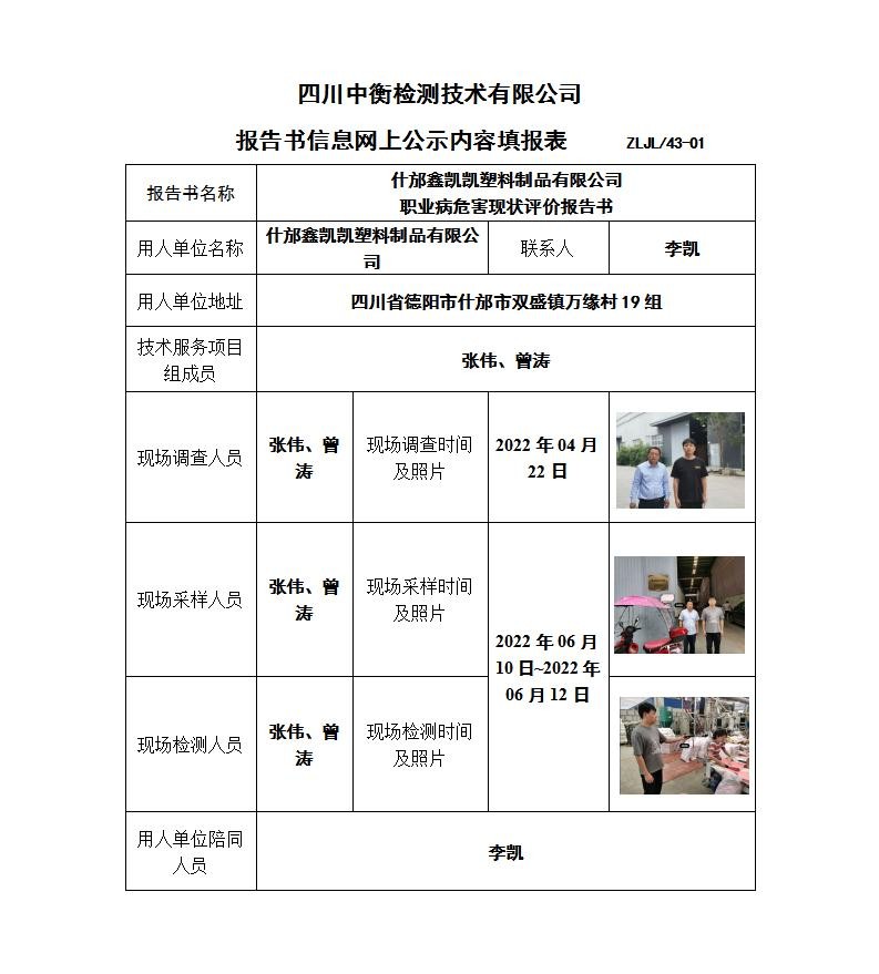 什邡鑫凱凱塑料制品有限公司 職業(yè)病危害現(xiàn)狀評價