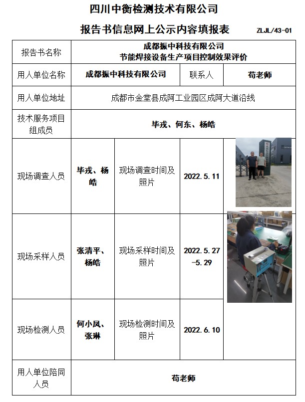 成都振中科技有限公司 節(jié)能焊接設(shè)備生產(chǎn)項目控制效果評價