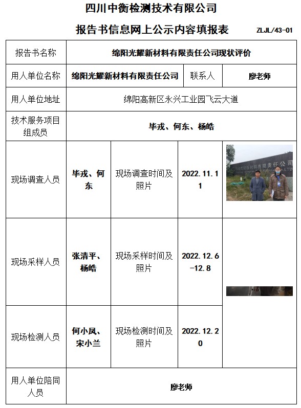 綿陽光耀新材料有限責任公司現(xiàn)狀評價
