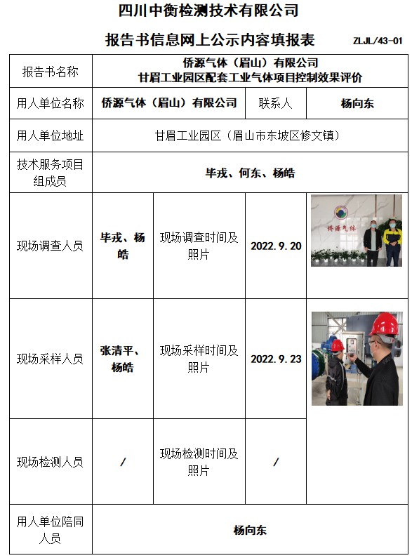 僑源氣體(眉山)有限公司 甘眉工業(yè)園區(qū)配套工業(yè)氣體項(xiàng)目控制效果評(píng)價(jià)