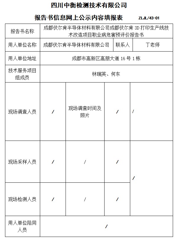 成都伏爾肯半導體材料有限公司成都伏爾肯3D打印生產(chǎn)線技術改造項目預評價
