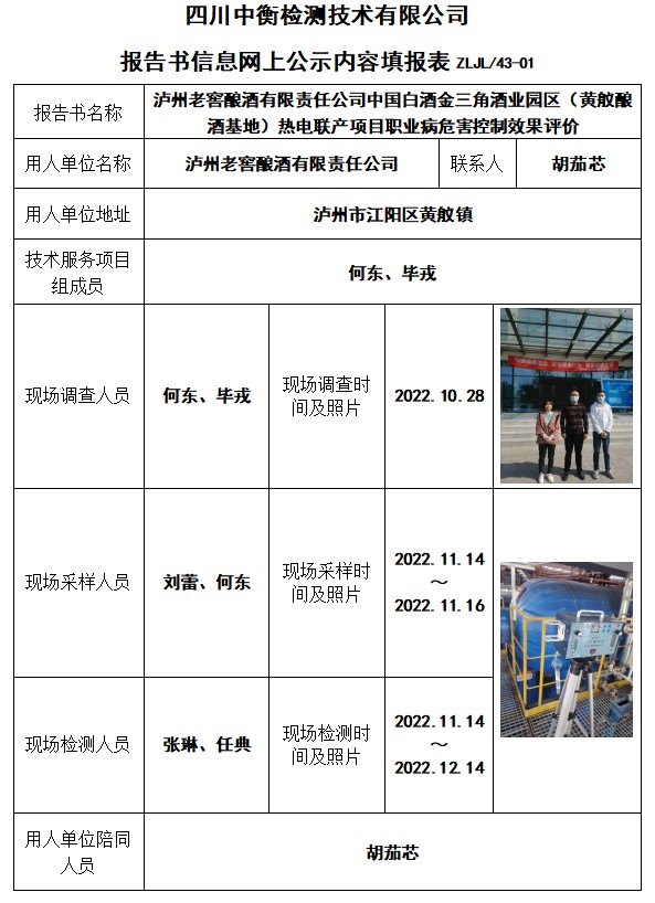 瀘州老窖釀酒有限責任公司中國白酒金三角酒業(yè)園區(qū)(黃艤釀酒基地)熱電聯(lián)產(chǎn)項目控制效果評價