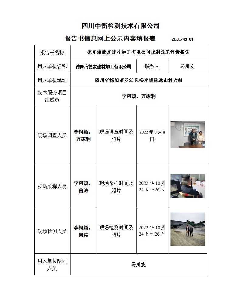 德陽海德友建材加工有限公司 礦產(chǎn)品、道渣加工項(xiàng)目 職業(yè)病危害控制效果評(píng)價(jià)報(bào)告書