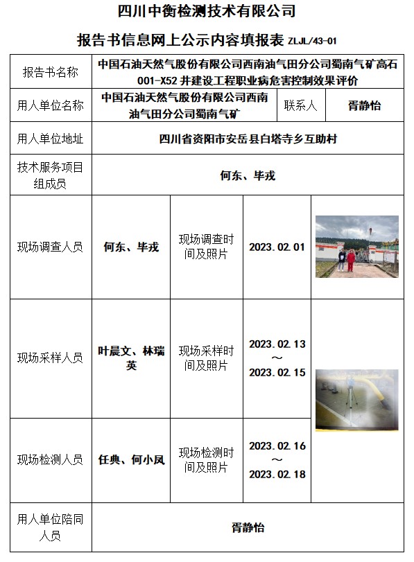 中國石油天然氣股份有限公司西南油氣田分公司蜀南氣礦高石001-X52井建設工程控制效果評價