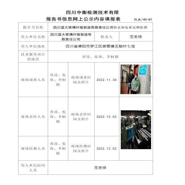 四川藍(lán)大玻璃纖維制造有限責(zé)任公司定期檢測(cè)