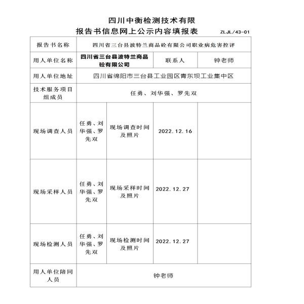 四川省三臺(tái)縣波特蘭商品砼有限公司定期檢測