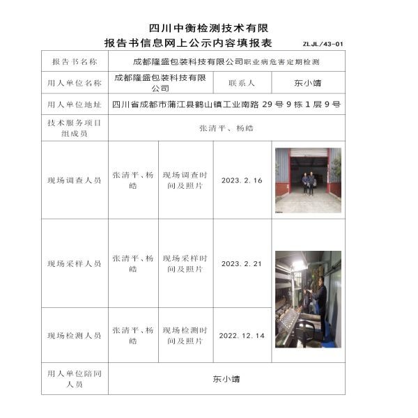 成都隆盛包裝科技有限公司定期檢測(cè)