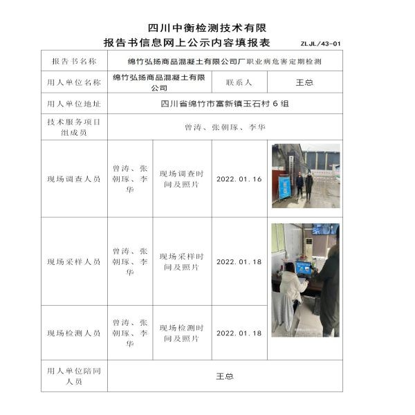 綿竹弘揚(yáng)商品混凝土有限公司職業(yè)病危害定期檢測