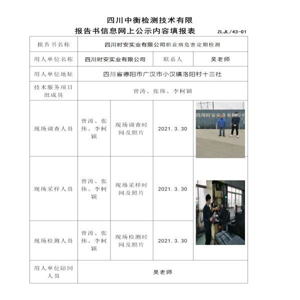 四川時(shí)安實(shí)業(yè)有限公司定期檢測