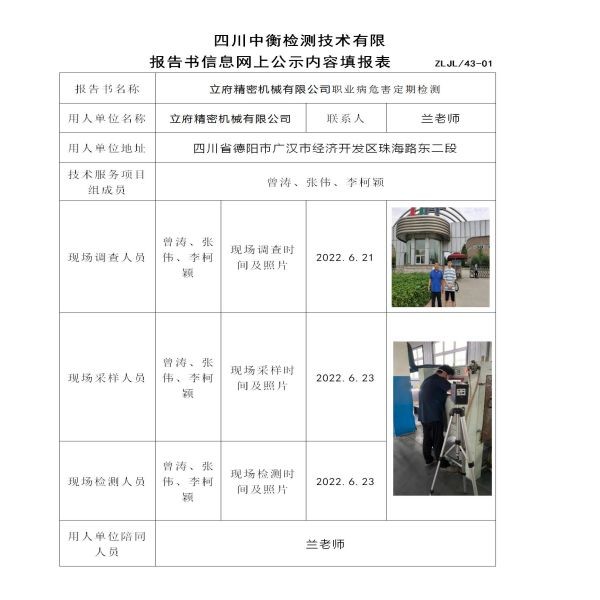 立府精密機(jī)械有限公司職業(yè)病危害定期檢測(cè)