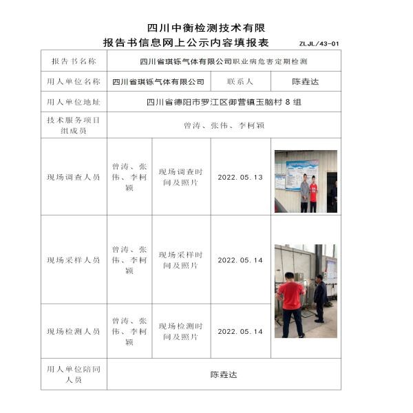 四川省琪鑠氣體有限公司職業(yè)病危害定期檢測(cè)