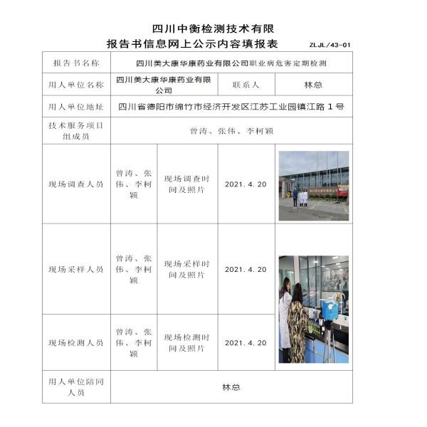 四川美大康華康藥業(yè)有限公司職業(yè)病危害定期檢測(cè)