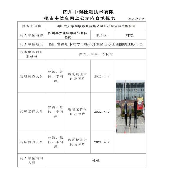 四川美大康華康藥業(yè)有限公司職業(yè)病危害定期檢測