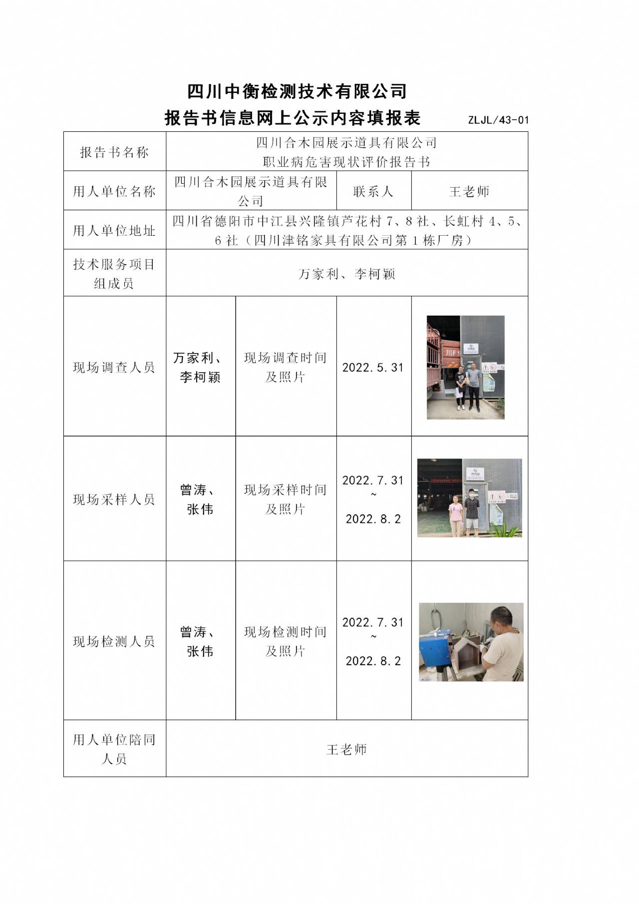 四川合木園展示道具有限公司職業(yè)病危害現(xiàn)狀評價