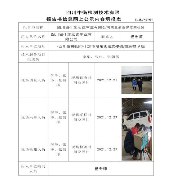 四川省什邡宏達(dá)車業(yè)有限公司定期檢測