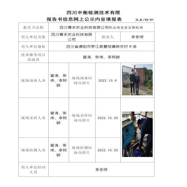 四川青禾農(nóng)業(yè)科技有限公司定期檢測(cè)