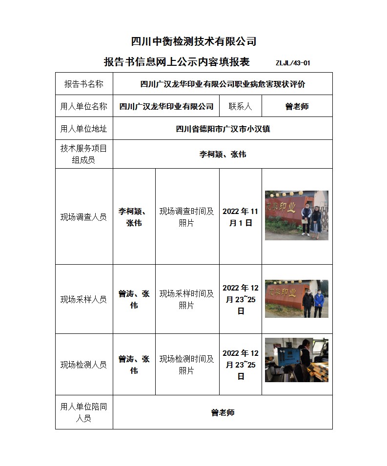 四川廣漢龍華印業(yè)有限公司 職業(yè)病危害現(xiàn)狀評價