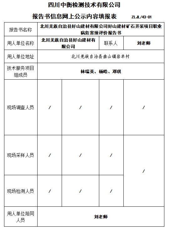 北川羌族自治縣好山建材有限公司好山建材礦石開采項(xiàng)目職業(yè)病危害預(yù)評(píng)價(jià)報(bào)告書