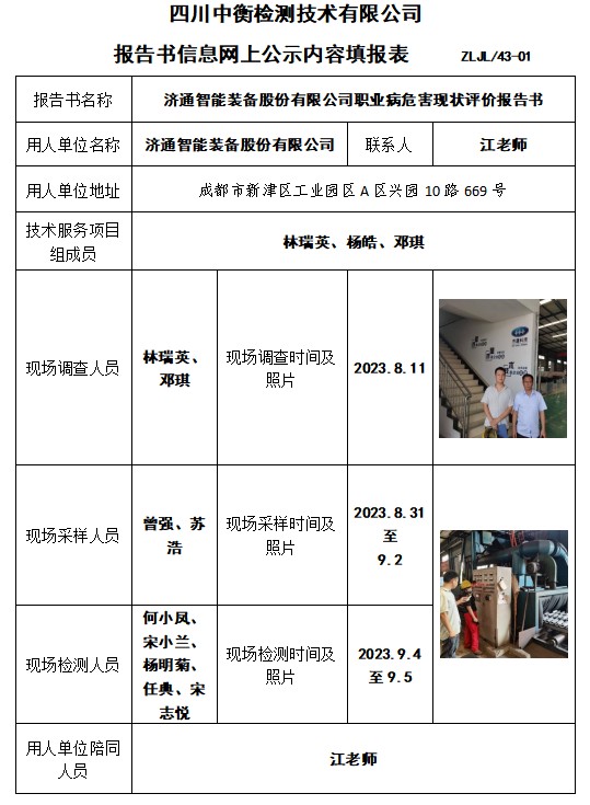 濟(jì)通智能裝備股份有限公司職業(yè)病危害現(xiàn)狀評(píng)價(jià)報(bào)告書(shū)