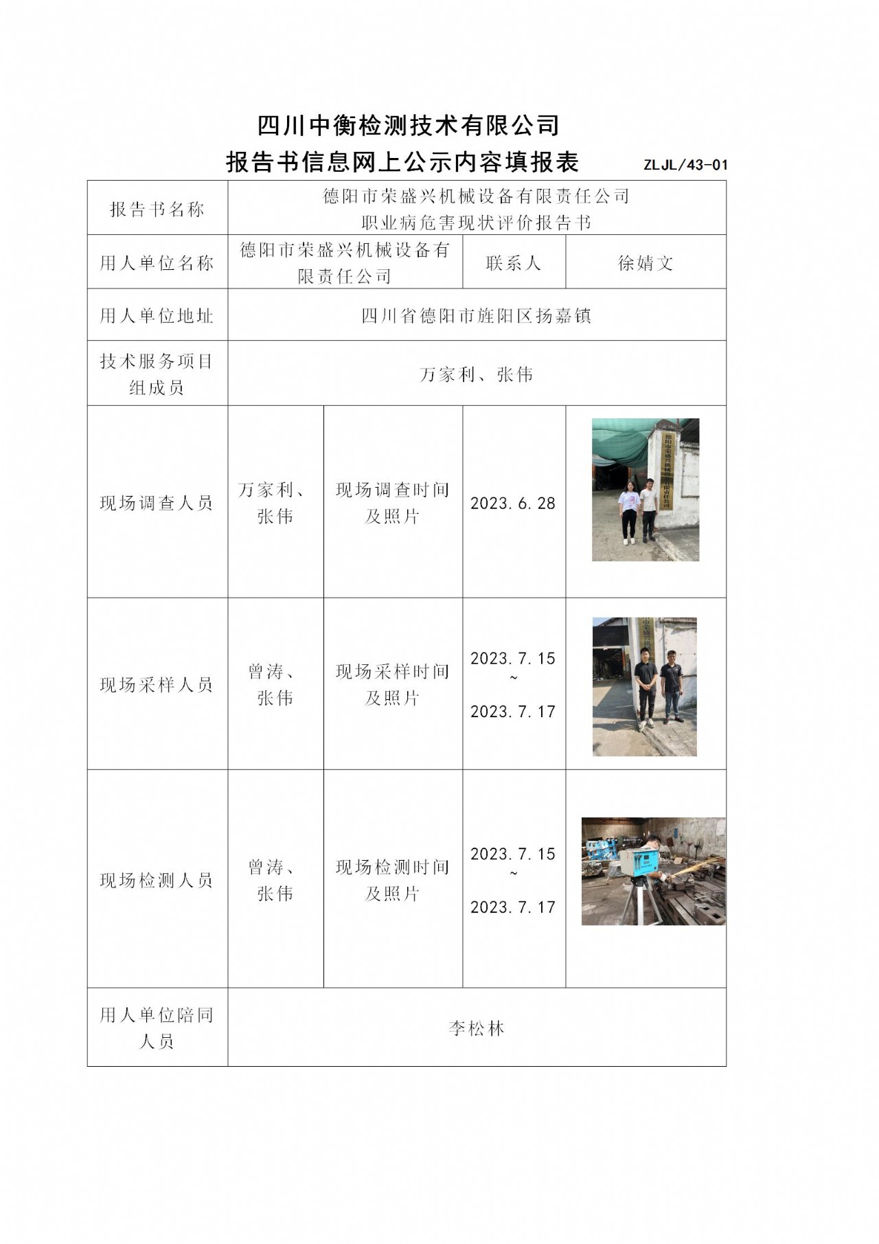 德陽市榮盛興機(jī)械設(shè)備有限責(zé)任公司 職業(yè)病危害現(xiàn)狀評價(jià)