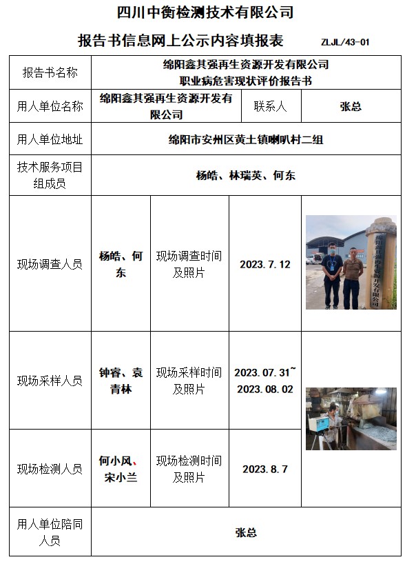綿陽鑫其強(qiáng)再生資源開發(fā)有限公司 職業(yè)病危害現(xiàn)狀評(píng)價(jià)報(bào)告書