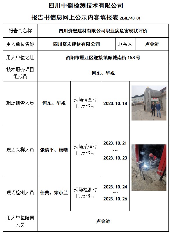 四川資宏建材有限公司職業(yè)病危害現(xiàn)狀評(píng)價(jià)