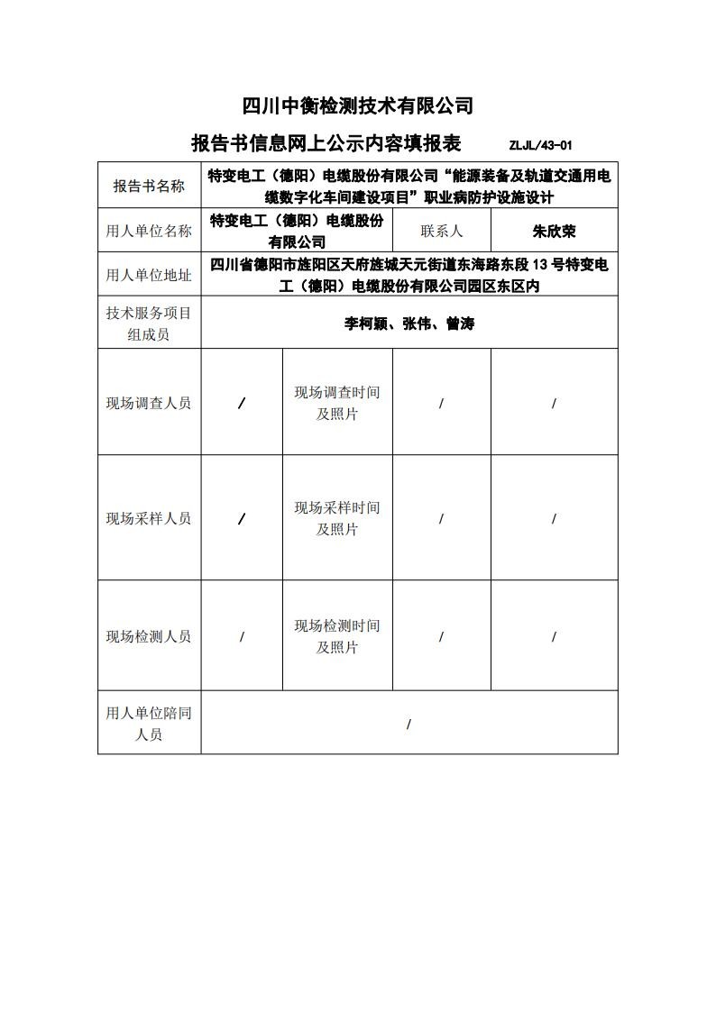 特變電工(德陽)電纜股份有限公司“能源裝備及軌道交通用電纜數(shù)字化車間建設(shè)項(xiàng)目”職業(yè)病防護(hù)設(shè)施設(shè)計(jì)