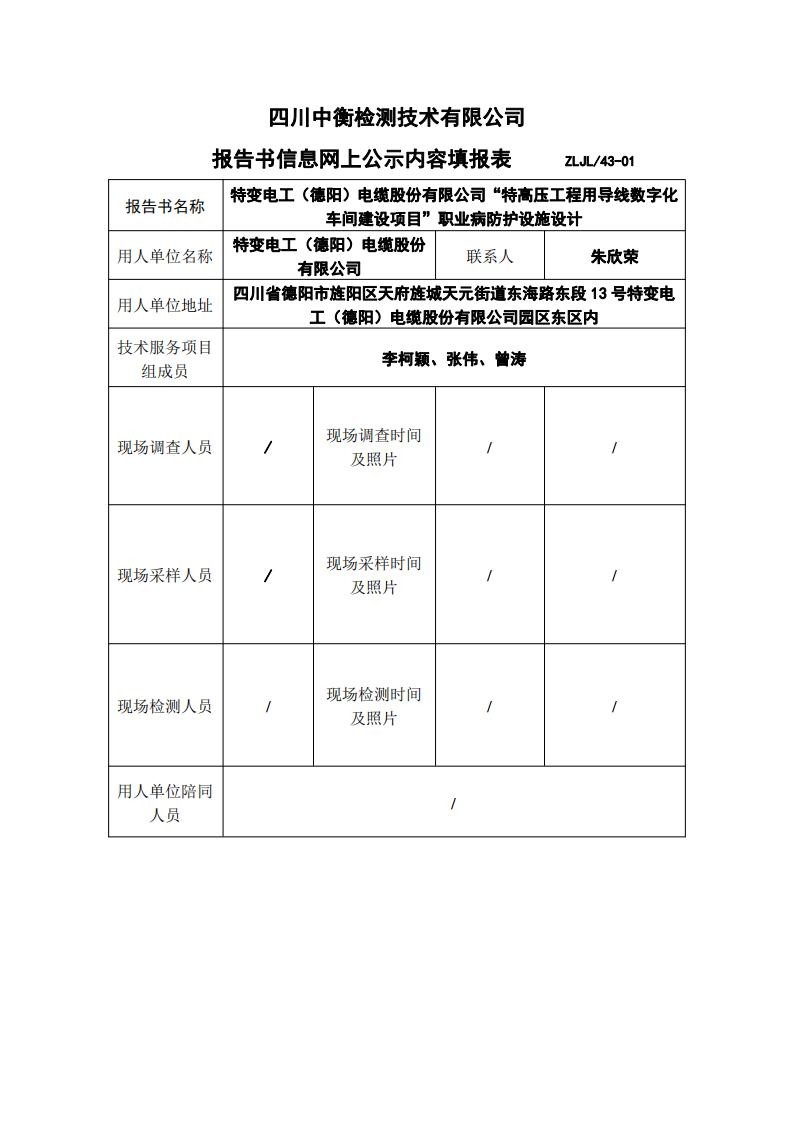 特變電工(德陽)電纜股份有限公司“特高壓工程用導線數字化車間建設項目”職業(yè)病防護設施設計