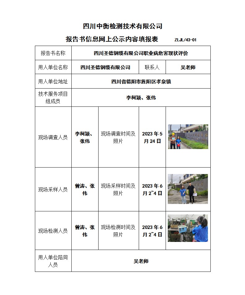 四川圣德鋼纜有限公司職業(yè)病危害現狀評價