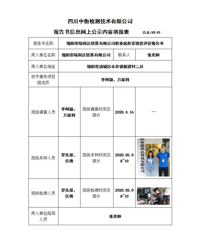 綿陽市瑞利達貿(mào)易有限公司職業(yè)病危害現(xiàn)狀評價報告書