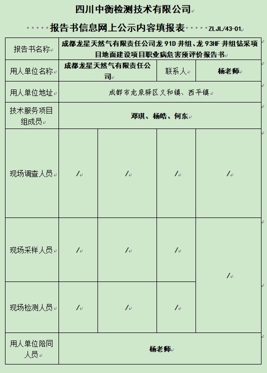 成都龍星天然氣有限責(zé)任公司龍91D井組、龍93HF井組鉆采項(xiàng)目地面建設(shè)項(xiàng)目職業(yè)病危害預(yù)評(píng)價(jià)報(bào)告書