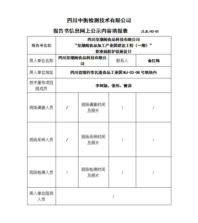四川皇潮閣食品科技有限公司“皇潮閣食品加工產(chǎn)業(yè)園建設(shè)工程(一期)”職業(yè)病防護(hù)設(shè)施設(shè)計(jì)