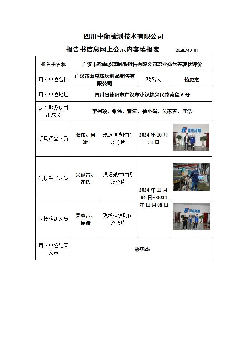 廣漢市盈森玻璃制品銷(xiāo)售有限公司職業(yè)病危害現(xiàn)狀評(píng)價(jià)