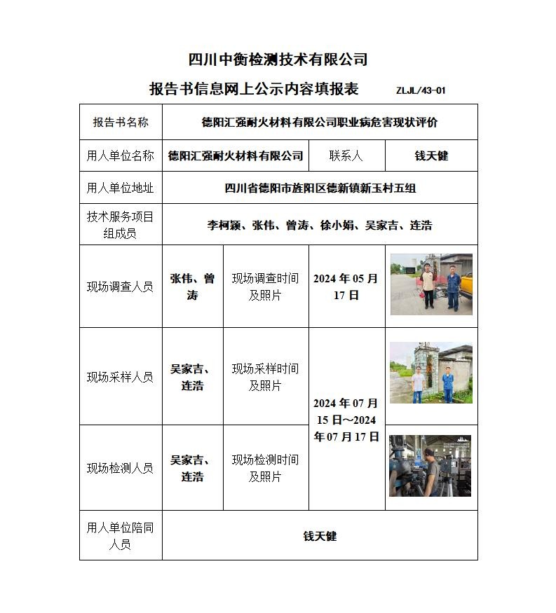 德陽匯強(qiáng)耐火材料有限公司職業(yè)病危害現(xiàn)狀評價(jià)