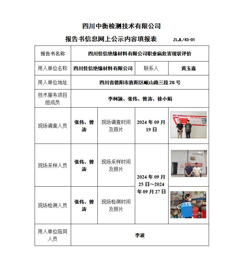 四川佳信絕緣材料有限公司職業(yè)病危害現(xiàn)狀評價