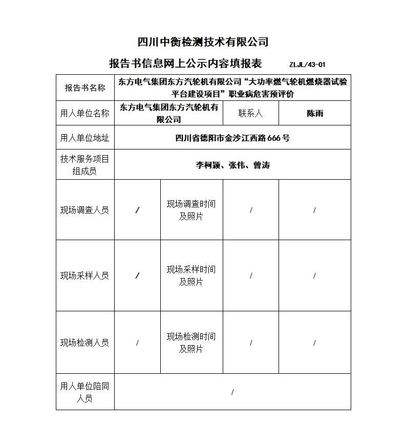東方電氣集團(tuán)東方汽輪機(jī)有限公司“大功率燃?xì)廨啓C(jī)燃燒器試驗(yàn)平臺建設(shè)項(xiàng)目”職業(yè)病危害預(yù)評價(jià)