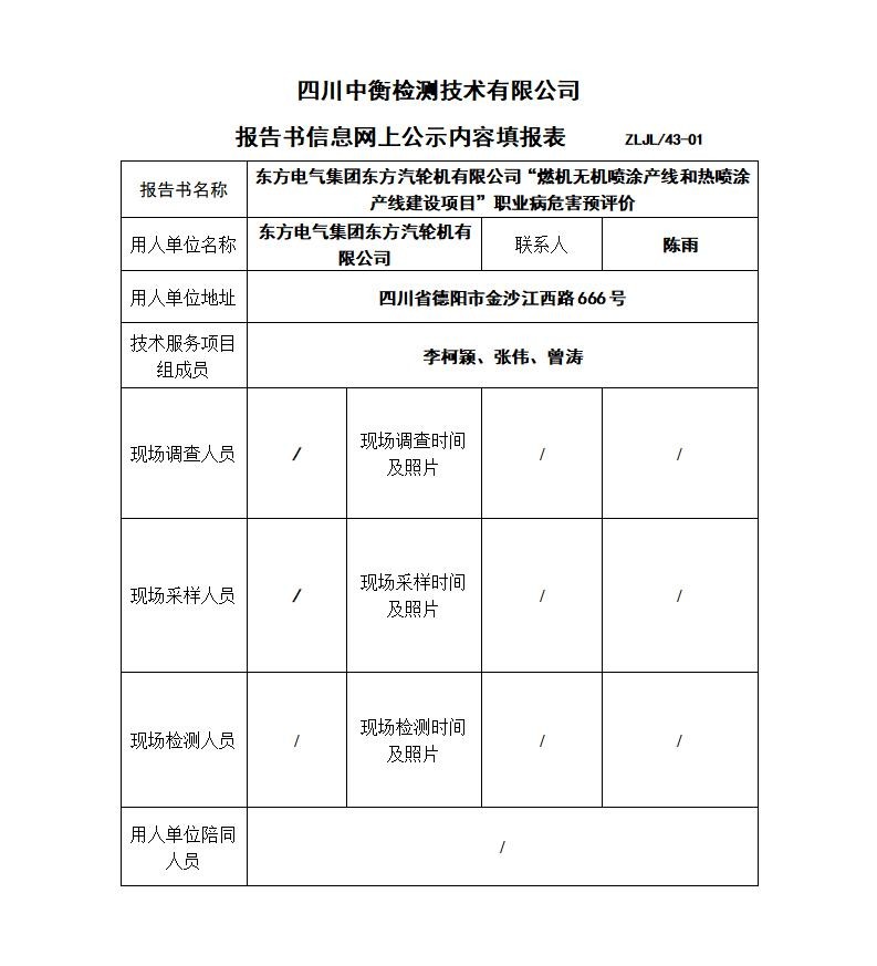 東方電氣集團(tuán)東方汽輪機(jī)有限公司“燃機(jī)無機(jī)噴涂產(chǎn)線和熱噴涂產(chǎn)線建設(shè)項(xiàng)目”職業(yè)病危害預(yù)評(píng)價(jià)