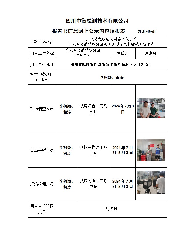 廣漢星之航玻璃制品有限公司 廣漢星之航玻璃制品深加工項(xiàng)目 職業(yè)病危害控制效果評價(jià)